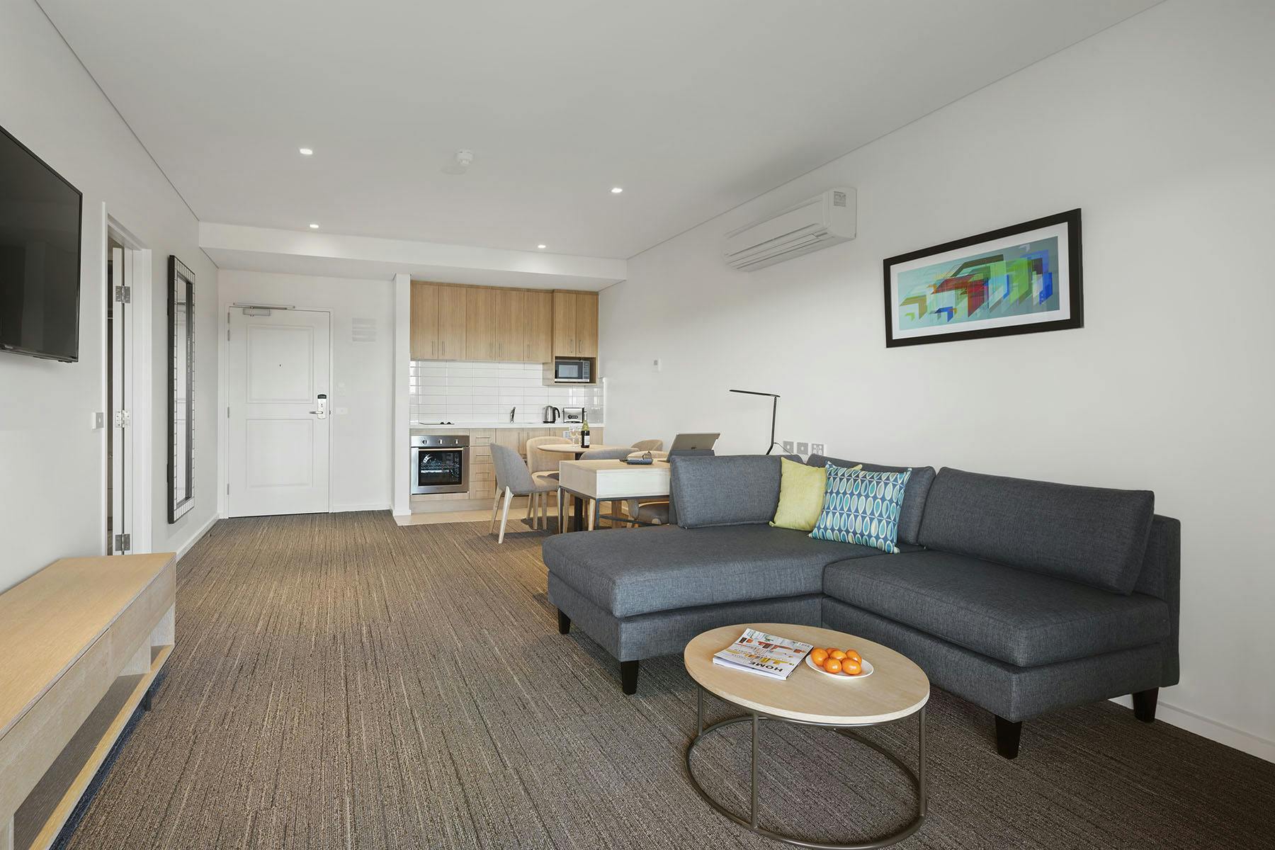 Quality Hotel Lakeside’s apartments take prime position on the top floor of our new building and are the only rooms in Bendigo to offer generously sized balconies with breathtaking views of Lake Weeroona, parklands and our regional city. Ideal for a corporate stay or that special get-away, our One Bedroom Apartments offer 60 square meters of exclusivity, practicality and style. Each room features luxury King split beds (can be configured as a king bed or two single beds), a self-contained kitchen area with an open cook top, microwave, fridge and dishwasher, access to free WiFi, a well-appointed bathroom as well as modern furnishings. You can be confident that you will be enjoying the best in accommodation that Bendigo has to offer.